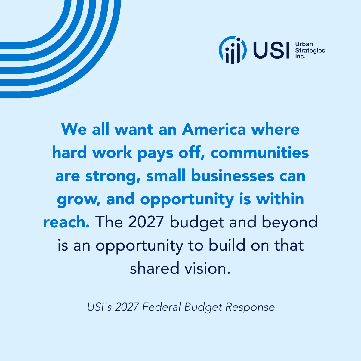 We all want an America where hard work pays off, communities are strong, small businesses can grow, and opportunity is within reach. The 2027 budget and beyond is an opportunity to build on that shared vision.